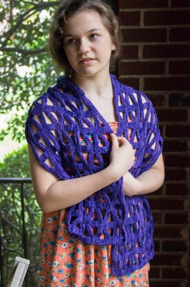 This rectangular shawl highlights all the stitch pattern characteristics of my new Geometric Openwork™ technique depending on how it is worn. The drape of the fabric is wonderful! Worked in For Better or Worsted from Anzula Luxury Fibers it is sure to be a favorite!