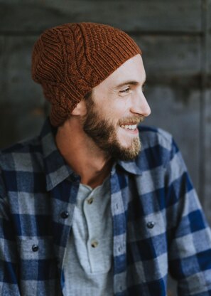 Pronounced “KEE-an”, Cian is a seriously knitterly hat. This unisex beanie features a bold, allover pattern of paired rope cables that emerge from the ribbed brim and travel diagonally across the body of the hat. Cian is a fast and imminently satisfying project—exactly the kind of pattern I find myself wanting to knit over and over again!