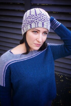 Options are given in the pattern for a regular beanie, slouchy cap, or a cowl. The design is worked in two contrasting colours of light fingering yarn. In addition to the stranded knitting, a double brim makes the hat especially warm; the cowl is doubled too, throughout, for maximum warmth. Whichever option you choose, I hope you make some pleasant memories of your own while wearing this design!