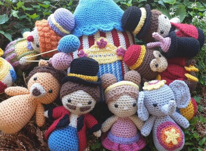 Complete set of 8 crochet amigurumi PATTERNS! Patterns include the list of suggested used yarns (Paintbox Yarns Simply Aran and Stylecraft Special Aran) Included patterns: - Ballerina - about 21 cm long - Clown - about 23 cm long - Elephant - about 18 cm long - Lion - about 20 cm long - Lion Tamer - about 24 cm long - Magician - about 24 cm long - Monkey - about 22 cm long - Tent Pillow - about 30 cm tall !! Sizes using Aran weight yarn and 5.00 mm crochet hook !! The patterns are written in English (US) using US terminology.