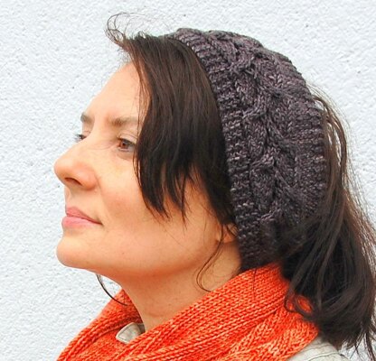 This is a fun little knit to keep ears warm and hair back. A bit of texture, lace, and cabling. You will need 2 buttons to fit your buttonholes.
