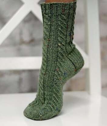 This sock is knit top down, with a heel flap and gusset and a wedge toe. Claire is written for double pointed needles, but can easily be converted to two circulars or magic loop.