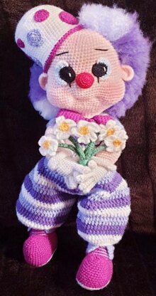 We would like to introduce to you ‘Clarence The Clown’ he’s worked in basic stitches and rounds, stands at approximately 19.5” in DK (8ply) so will turn out bigger when using different yarn (Worsted 10ply) this pattern is also written in US Terminology, this pattern includes the following:-