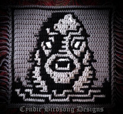 This pattern is part of my Classic Horror Films series, to create an overlay mosaic crochet square that can be used in other types of projects, such as blankets, pillows, satchel bags, table mats, etc.
