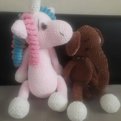 nstruments and materials needed to create UNICORN PLUSH TOY size about 14 inches (35cm) when sitting and 20" from Horn to bottom feet: • hook 4,5 mm • yarn baby pink and light cream colors, I used "Himalaya Baby Velvet Chennelle" • stuffing material; • sewing needle; • sewing pins; • scissors • eyes with security locker (optional if for babies you need to sew eyes and nose) Please note that this is an unicorn crochet PATTERN, NOT THE FINISHED TOY.