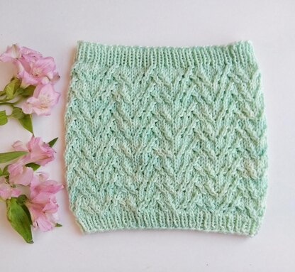 Measurements: 11" across (width laid-flat) x 10" from cast-on edge to bind-off edge. 23" circumference.