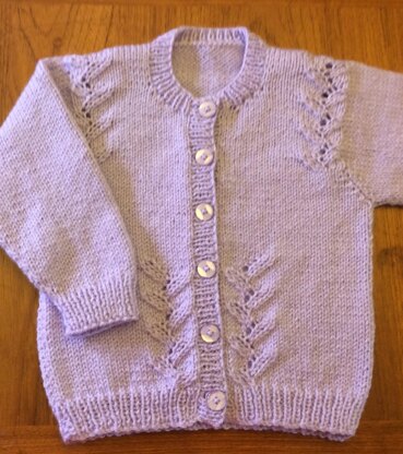 A delightful cardigan, in 2 sizes, (21 & 22 1/4") for a little girl with pattern detailing also on the shoulder. It may also be made using King Cole Paradise Beaches DK.