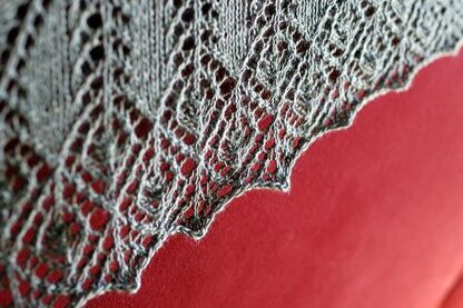 Clothilde is a lace shawl knit in one piece from the center top outward. Utilizing traditional gull wing lace that flares into spear points at the edge, Clothilde is a good project for the intermediate lace knitter. With both written instructions and charts, knitters should be able to find their most comfortable way of following the pattern. The pattern can be easily customized by changing the number of repeats of either the Gull Wing or the Spearhead lace.