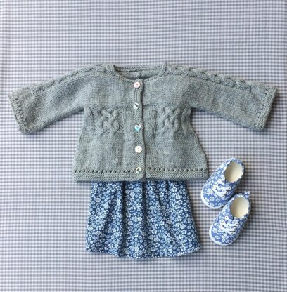 The yoke is worked in two halves, from the bell sleeve cuff to center, then stitches are picked up for the body and worked down to the hem. The cable instructions are provided in both written form and as a chart.