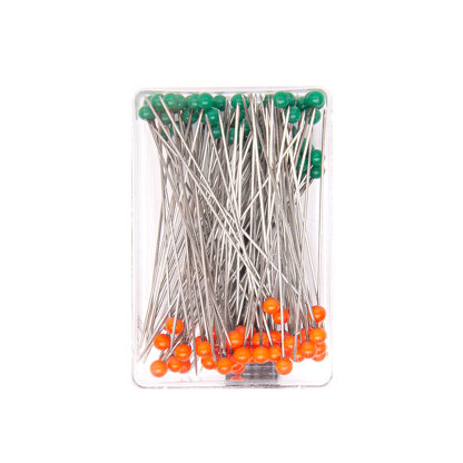 Pins feature a sharp tip and strong shaft making them perfect for quilting. The pinhead is made from iron-proof glass.. Case contains 100 pins.