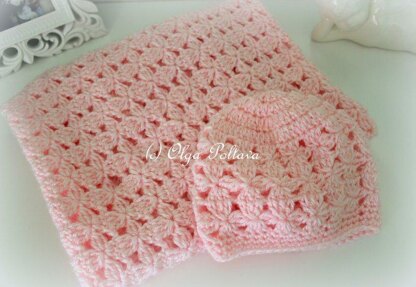 This listing is for two patterns - a baby blanket pattern, and a matching baby hat pattern (size 0-3 months). The finished size of the blanket is approximately 32 by 27 inches. Notice that this a small blanket, but the pattern can easily be adjusted to a bigger size (I included the multiple for the stitch in the pattern). The hat size is 0-3 months, about 14 inches in circumfernce and 5.5 inches in height. Both items are made from light worsted (category 3) weight 100% acrylic yarn and size G/6 (4.25 MM). The skill level is easy, and the patterns are very detailed.