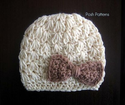 This crochet pattern is for a GORGEOUS beanie or newsboy style hat. It features a fun and elegant stitch pattern, and a sweet bow. Also makes a fabulous photo prop!