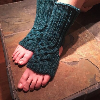 These cozy cabled leg warmers knit up quickly and keep you warm, but leave your heel and toe with enough grip that they’re great for yoga or wearing with slippers around the house.