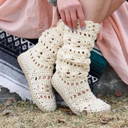 This lacy cotton crochet boots pattern will complete your boho-inspired outfits all spring and summer long! Make them with flip flop soles for the most comfortable, airy boots you've ever worn. (They make great slippers too!)