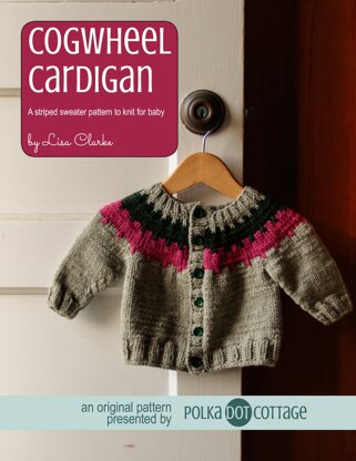 Sized from Newborn to Toddler, the Cogwheel baby cardigan knitting pattern works up quickly in a worsted weight wool or other baby-friendly fiber.