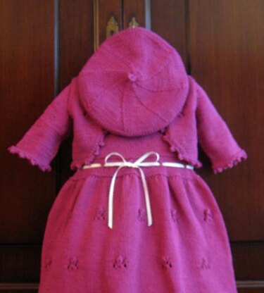 Sizes for dress and shrug: 12 mo (18 mo, 2T, 3T, 4T) Chest measurements: 19 (20, 21, 22, 23)” Beret sizes: 6-12 mo (12 mo-3T, 4T+)