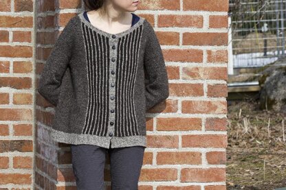 A slightly oversized A-shaped cardigan with dropped shoulders and the front with vertical stripes to flatter your body. Choose your favorite colors: Play with solids and hand dyed or go all natural!
