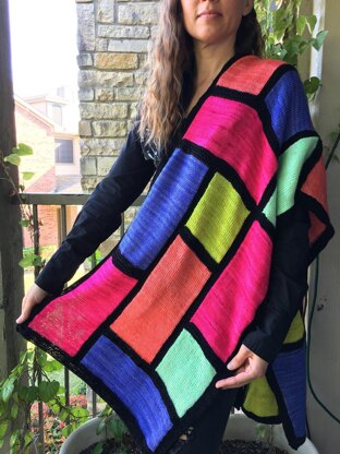 Color Block Shawl It is a fingering weight shawl that is made piece by piece, which makes it easy to work on wherever you are. The separate pieces are then seamed together. For the outer edges, stitches are picked up along each side to add a garter stitch border. This is a shawl that anyone from a beginner to an advanced knitter can enjoy. The best part is choosing the colors. I have included a coloring page to help you plan your beauty. This is also a great stash buster. This shawl would also look amazing with speckled yarns.