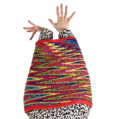 Yes, it’s intarsia, but you shouldn’t feel intimidated by all of the colorwork. The Color Warp Cowl is a hybrid technique that falls somewhere between traditional hand knitting and a commercial method called warp knitting.Each yarn makes a color stripe, zigging and zagging its way to the bottom of the cowl. The method is simple, only using knits and purls to create the zig zag effect. You don’t even have to twist the yarns together as you would in traditional intarsia.
