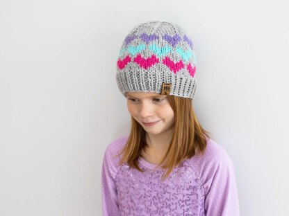 Little Hearts Hat Knitting Pattern Valentine's Day Love Medium Weight Easy Knit Winter Beanie Toque Baby Toddler Child Women Men Worsted