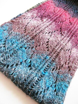 Comfort is knitted flat, with the ends grafted together, worked in a quick and beautiful lace pattern that is easy to memorize.
