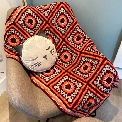 I called this 'Comfort Glow' because of how the orange appears against the other colours and it's a cosy little lapghan blanket! This blanket is made with 20 squares which are 23x23cm (9x9in) using a 4mm hook and a DK yarn. The pattern would suit any DK but I made mine in acrylic Stylecraft Special DK. My goal was to use crochet stitches that give both a subtle pattern effect and also a striking texture, such as the spike front post trebles. I have given a finished size 102x125cm (40x49in) but size is not critical because you can add more squares for a bigger blanket. Skill Level: Intermediate level of skill is needed as a knowledge of special stitches (written instructions are given for these) is required however, an advanced beginner could make this too. Please note that this pattern is written in UK terms. There are detailed written instructions with some photo tutorials plus a video link for joining the squares when you come to the horizontal.