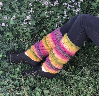 These easy to create basic legwarmers are great for a first project and to help you learn some basic crochet stitches, like the double crochet and foundation double crochet. I hope the beginners out there enjoy working this pattern. It is truly an easy one, and they work up FAST. And they are reversible!
