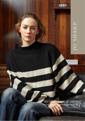 A generously sized sweater designed for comfort and warmth. Simple drop shoulder shaping makes this an easy beginners project. The model pictured is size A (size 8) and wears the size A garment.