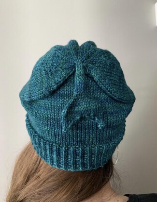 This hat is knit from the bottom up, and the whales tail is created using I-cord from the crown stitches and basic increases and decreases. It’s very simple, soothing knitting. Knit one for yourself, or surprise a friend or neighbor with one.