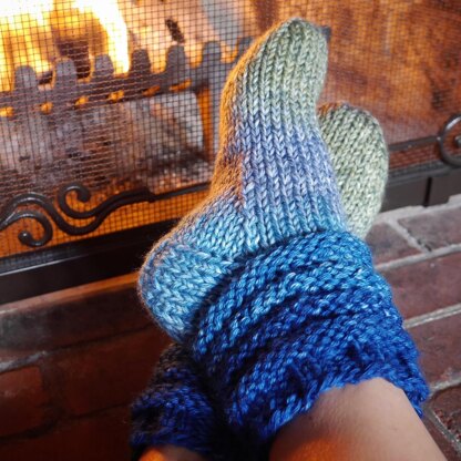These slipper socks would also be cute knit with two different yarns held together for a marl effect. Your imagination is the limit!