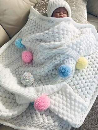 CONGRATULATIONS baby blanket/shawl pdf. Approx 36x36ins/91x91cms when completed It uses around 350-400gms baby soft double knit (UK) yarn The pom poms are entirely optional as always. I have added a couple of youtube links for anyone who might need them. Although these stitches are not particularly hard, perhaps a less experienced knitter might like the help on offer. This and all my patterns, are pdf ONLY. Please, please don't ask or assume you will receive a posted pattern. The answer will always be a very polite no. The price is for the pattern not any printing or postal charges. Plus you will be able to download your pattern instantly wherever you are in the world x