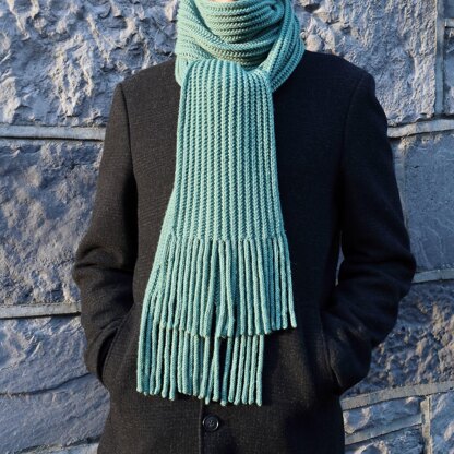 Scarf may be knit in any yarn (tension is not critical for this pattern), this information is just for example: