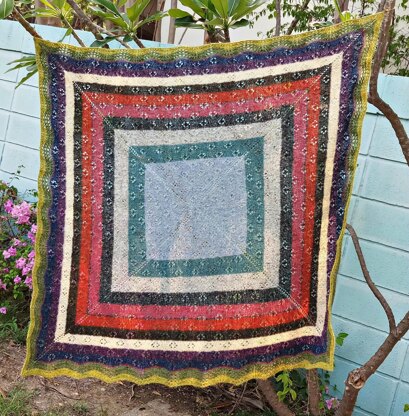 Across Scotland and northern England the word hap has been used to mean a wrap or cover. More specifically, it refers to a square knitted shawl. The traditional method for knitting this type of shawl starts with the edging and then stitches are picked up to knit the body. This contemporary design works from the center out, with the edging a continuation of the shawl, rather than a separate piece. Twelve colors of Kate Davies Designs Milarrochy Tweed - a light fingering-weight yarn - are used.