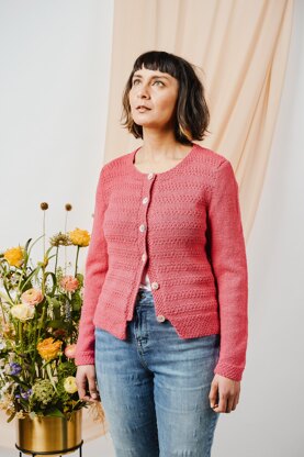 Simple moss stitch and textured stripes in a rich shade add much-loved detail and interest to this neat, slimline cardigan.
