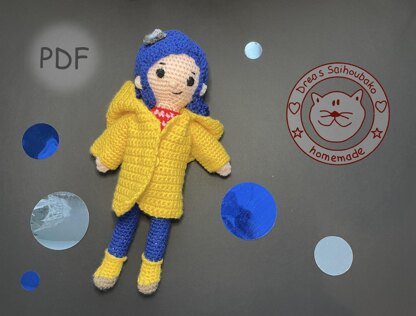 With yarn length 150m/50g this doll is about 30 cm high.
