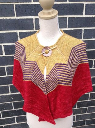 Corlette Point is an easy-to-knit top-down shawlette worked in a chevron pattern in three colours. Techniques used are knit, purl, yarnover and the double central decrease, for which an excellent tutorial is available on the TechKnitter blog (3 stitch decrease).