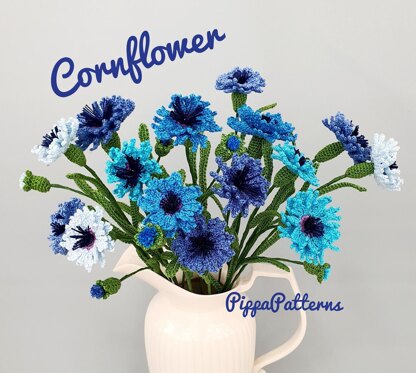 This is a crochet pattern for a Cronflower. The Instructions are in American Standard Terms and include: Easy to follow Step-by-step instructions and detailed photo guide with 100 + high resolution images that will explain each step on how to crochet and assemble every part of this Cornflower in 2 sizes, 1 bud, and 2 sizes of leaves.