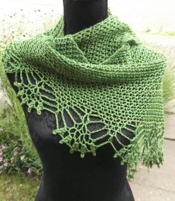 Corvus is a beaded single skein shawl, cousin to Draco. It is written using US terms and is also charted.