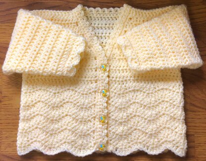 This crochet pattern is for a lovely chevron panel cardigan and would be ideal for either a boy or a girl. This pattern is based on trebles and is quick to make up using double knitting yarn. It is written in English using UK Terminology.