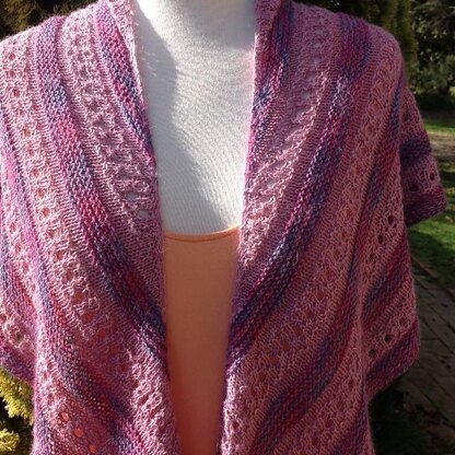 The shawl can be made bigger if you want to wrap it around your neck several times, or smaller if you want a neckerchief. Just bear in mind that if you want it to be bigger, you will need more yarn. The stretchy bind-off will use quite a bit of yarn, so if you keep on going to finish up a skein, leave about 3 times the amount you would for a normal bind-off.