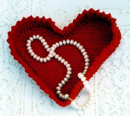 A fun gift for Valentines Day or any time of the year! What a nice item to put on your dressing table to keep jewelry in! Also use as a candy dish for treats for the children! This is such fun to knit, as it is easy! We all love easy patterns, so this is one to add to your file. You can make these up to sell at your next church bazaar too! Uses worsted weight yarns, knitting needles, US # 6, which will give the basket more stability. Finished size is about 8 wide by 8 ½ long.