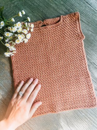 The Country Road Shell is worked in 2 panels and then seamed together, with a little keyhole in the back with a button closure.