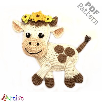 The pattern provides instructions to make a cute crochet applique that can be used in inumerable ways...decorate and personalize your favorite objects like hats, t-shirts, bags, school knap-sacks and lots of other stuff you can think of. The Cow measures about 8 in. in height by 8 in. wide using 2.50 mm crochet hook but the size can be varied by using thinner or thicker yarn and types of hook. Colors can be changed according to your personal preference. The pattern is designed for worsted weight yarn and uses American English crochet terms. This crochet pattern is available for Instant Download. Once your payment is received, you will get an email with the download link and details of your order. In case of problems feel free to contact me anytime.