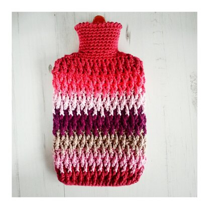 Requirements: 6mm crochet hook, 170g DK yarn (in 6 different colours), darning needle, large hot water bottle
