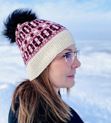 The Cozy Camper Hat is knit using DK weight yarn in three different colours. A high contrast colour combined with two colours in the same family are used to create a cohesive look, however, any combo will work. It has a simple colourwork pattern worked with only two colours of yarn per row. The pattern includes the option of a folded or regular hat brim. This is a unisex pattern that looks great topped with a pompom or just as is.