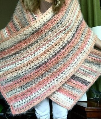 This wrap will help you crochet an oversized wrap that you will go to again and again at home by the fire, on the sofa watching a favorite show or just curling up with a book. Insrructions to customize to your size included.