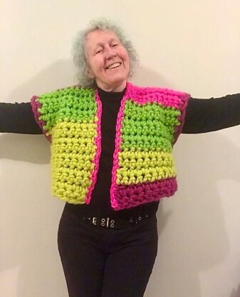 Introducing the The Crazy Big Cropped Vest which is made with a huge 25mm crochet hook and double strands of super bulky yarn and the single crochet stitch. I used Knit Picks Tuff Puff yarn as I just love the vibrant colours available in this yarn. I would love to see lots of your Crazy Big Cropped Vests in different colours once they are done.