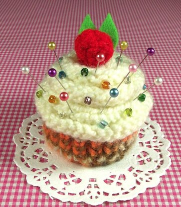Delicios and cute cupcake and pincushion, great for table decorations, baby and crafts rooms decorations, toy or just to keep for yourself, pattern requires knitting and crochet and is very easy to make, pattern include step by step instructions.