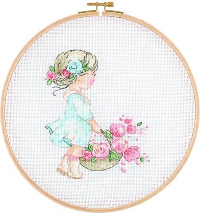 Creative World of Crafts Spring Girl Cross Stitch Kit - 26cm Diameter