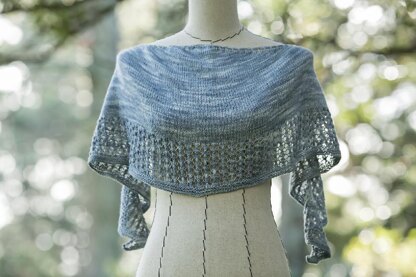 A crescent shawlette knitted in one piece with written and charted instructions.
